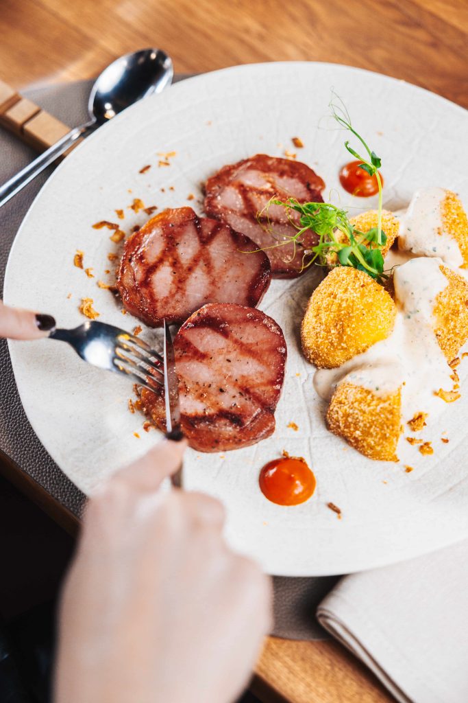U hotelu smo se okupile u petak navečer, oko 18 sati i nazdravile jedna drugoj i predivnom vikendu koji je pred nama. Brzo je prošlo naših prvih sat vremena i već je došlo vrijeme za večeru u obližnjem restoranu Crna svinja. Još od 2018 godine Crnoj svinji „tepaju“ da je ona hram nove slavonske kuhinje i obilato je hvale kako posjetitelji tako i gastro kritičari. Restoran se smjestio u 100 godina staroj, bivšoj štali od opeke (konobar nam je natuknuo da će biti uskoro i neko veće preuređenje, ali nismo uspjele izvući previše detalja pa neka to ostane iznenađenja) i nudi razne specijalitete, naravno dobar dio ponude se odnosi upravo na meso crne svinje. Crna slavonska svinja ili fajferica, hrvatska je autohtona pasmina svinja, a ako ste mesoljubac, nije da baš imate velik broj mjesta gdje ovakva jela možete kušati. Naši favoriti bile su juhe (rajčica, hren), zatim svinjski i juneći obrazi, trgana svinjetina i uštipci crne svinje.