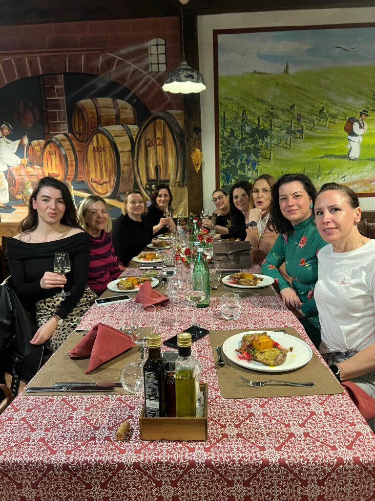 Nakon obilaska s degustacijom koji je trajao 2 sata, jedva smo dočekale prionuti na večeru (i otrijezniti se!) 🙂 Srećom, zahvaljujući organiziranom prijevozu nismo trebale same voziti nazad u hotel pa smo se i tu mogle skroz opustiti 🙂