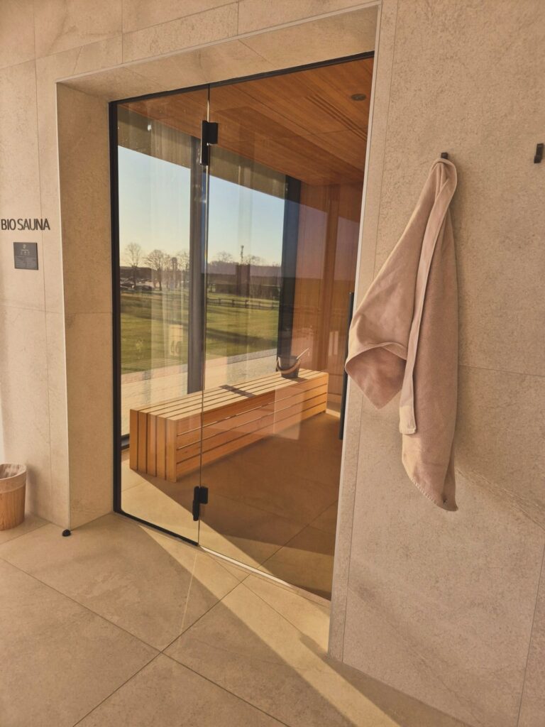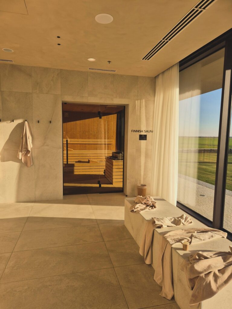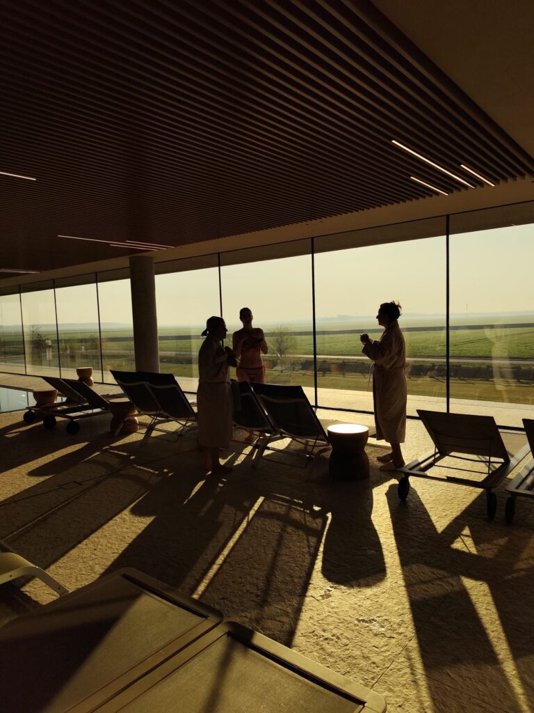 Cilj je bio maksimalno se razmaziti u wellness & spa prostoru hotela Materra koji zauzima čitav prvi kat. Prvo što vidite kad uđete u prostor jest 16 metara dug bazen i ležaljke s pogledom na nepreglednu zelenu ravnicu te vanjski jacuzzi. Sama ta kombinacija vode i pogleda u zelene daljine može vas u istom trenu „lansirati“ u stanje prepuštenosti i opuštenosti.